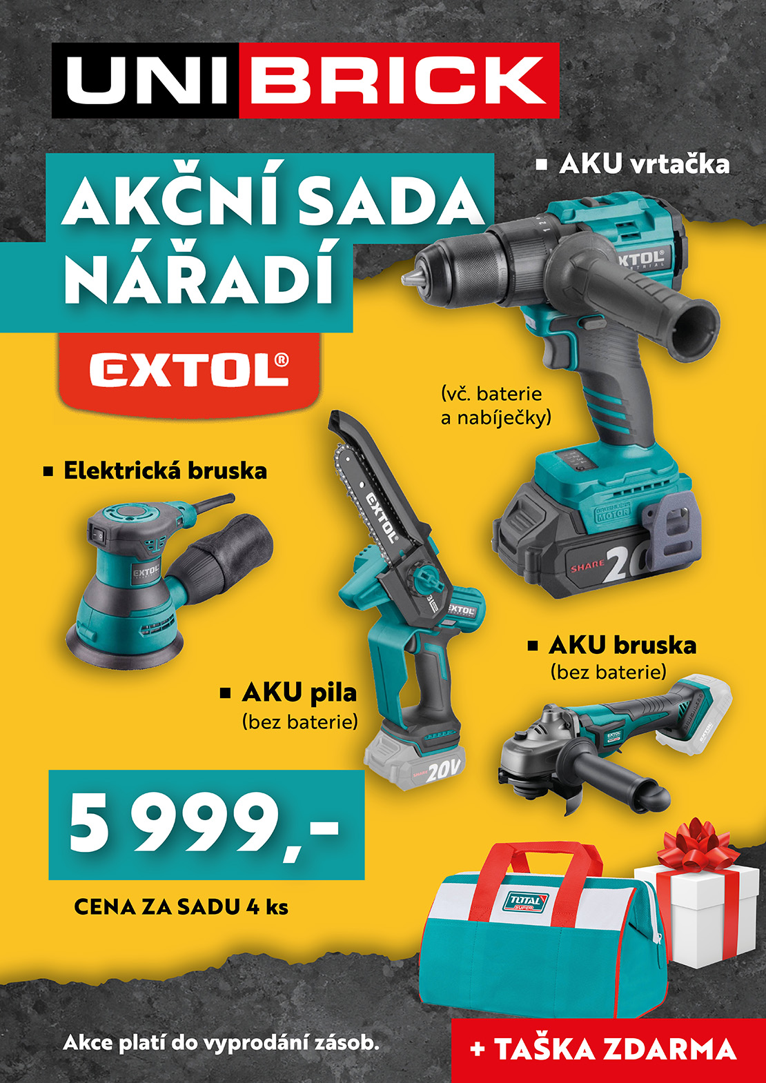 Pořiďte si u nás právě teď čtyřdílnou sadu nářadí EXTOL za výhodnou cenu a získejte jako dárek tašku. Nabídka platí do vyprodání zásob.